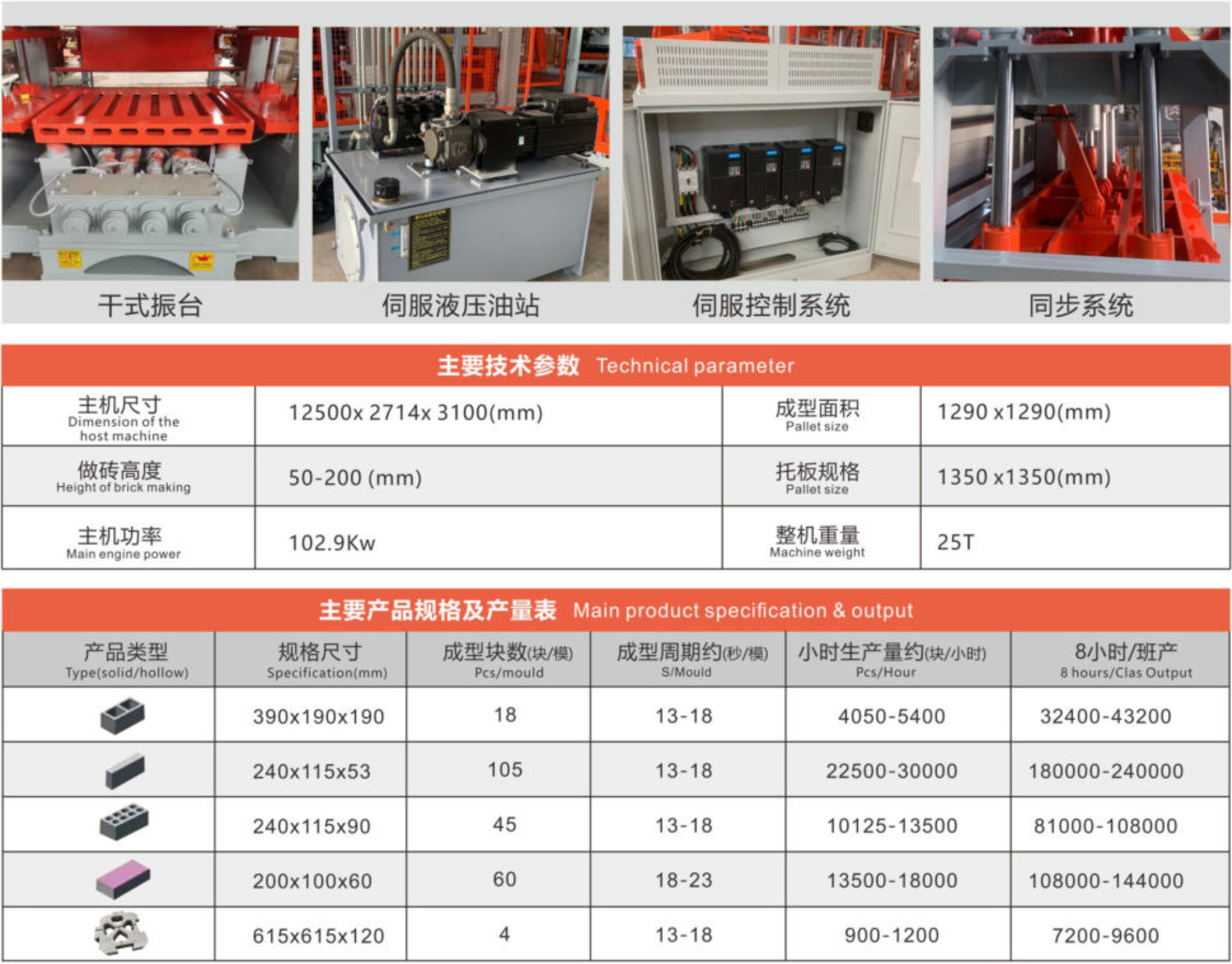 ● 采用國(guó)外原版高性能振搗系統(tǒng),振動(dòng)強(qiáng)勁,成型周期短,產(chǎn)品密實(shí)度高。